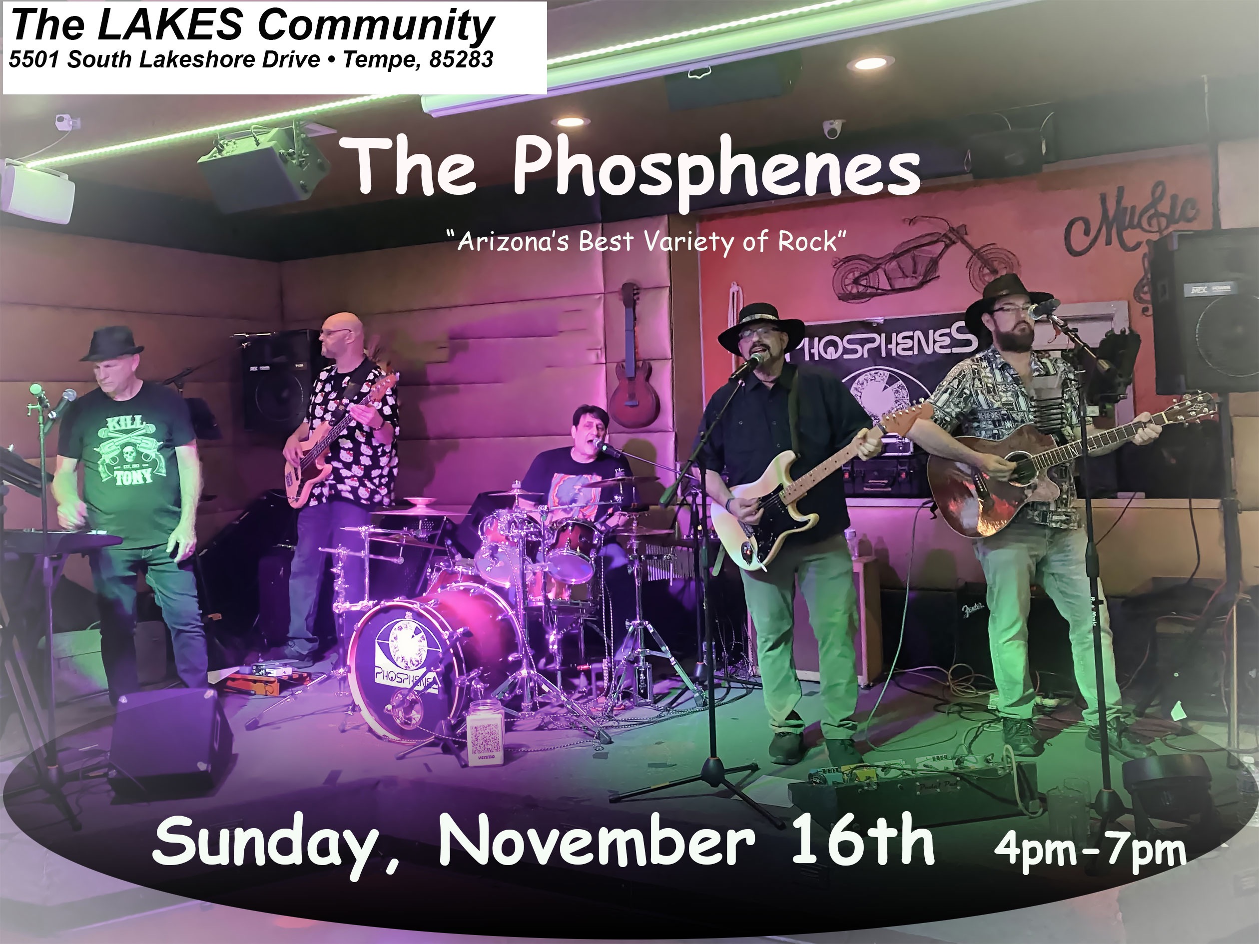 Come and enjoy The Phosphenes classic rock dance band playing music of the 70s, 80s, and 90s.